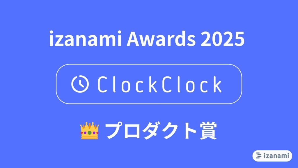 この度、ClockClockは、エンジニア・クリエイター向けプロダクト共有プラットフォームが主催する「izanami Awards 2025」に選出されましたことをお知らせいたします。 1. 受賞の概要 「izanami Awards 2025」は、プラットフォーム「izanami」に登録された... -